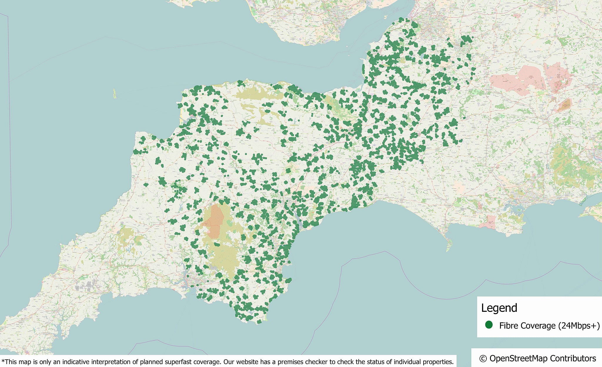 All coverage shown indicates areas where a minimum download speed of 30Mbps (Superfast) is available.